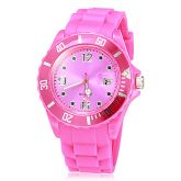 Calendário Unisex Round Dial borracha de silicone de quartzo analógico relógio de pulso